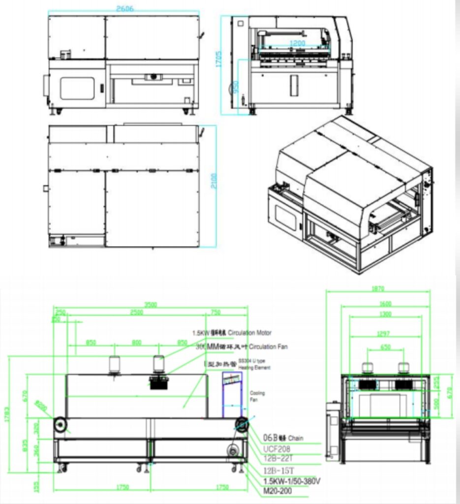 • The machine has stable performance. Big power recycle motors ensure hot air evenly. All chain bars use solid 45# steel and protect from external silicone tubes which can bear heavy items without film burning;